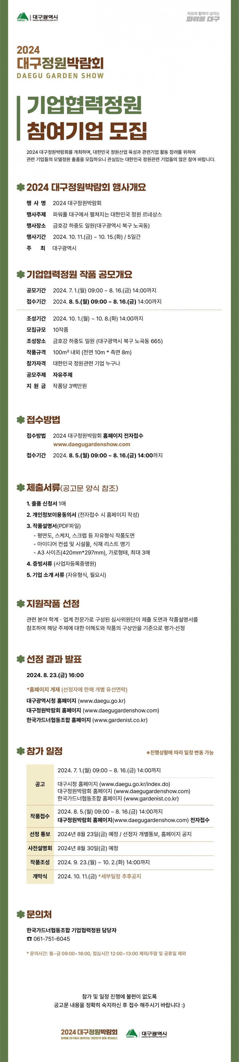 5. 문의처 : 061-751-6045 (2024 대구정원박람회 운영본부)